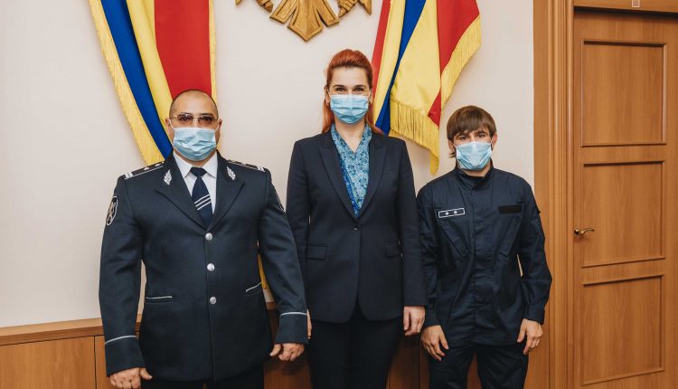 Ana Revenco, ministrul de Interne, i-a premiat pe doi angajați ai MAI: Victor Ciobanu, campionul mondial la lupte libere, și Ruslan Matcovschi, campion mondial la PowerLifting