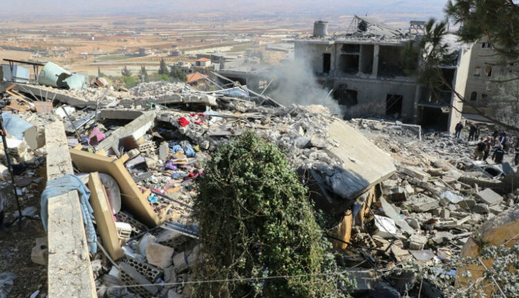 Marți, muncitorii au au sosit locul unei lovituri israeliene în Yohmor, în Valea Bekaa din Liban, unde clădirile au fost făcute una cu pământul.