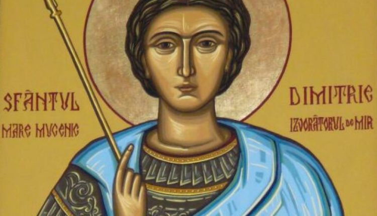 Dimitrie sau Dumitru, fiul proconsulului roman din Salonic, a trăit pe vremea împăraților Dioclețian și Galeriu. El a fost botezat pe ascuns de părinții săi, care erau creștini. Dimitrie a devenit un predicator, continuându-și totodată cariera de militar. Pentru că l-a binecuvântat pe un tânăr soldat să-l înfrunte pe vandalul Lie, care ucidea creștini fără cruțare, Sfântul Dumitru a fost omorât din ordinul împăratului, iar trupul său a fost lăsat pradă fiarelor sălbatice. El a fost canonizat ca mare mucenic.