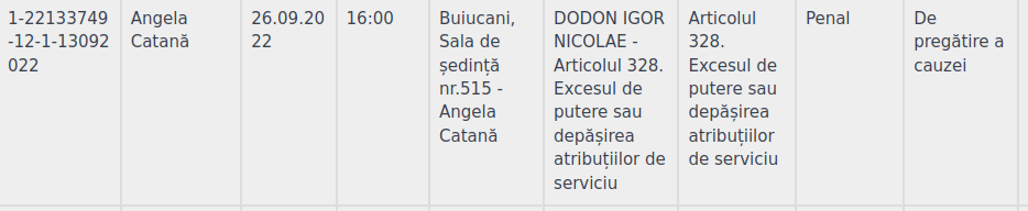 Potrivit portalului instanţelor de judecată, prima şedinţă va fi una „de examinare a cauzei”. Deocamdată nu este clar dacă dosarul va fi examinat de un singur magistrat sau a fost format complet dintrei judecători.