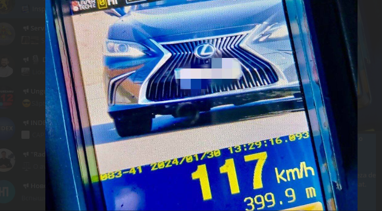 Șoferul unui Lexus, un bărbat de 37 de ani din Chișinău, se deplasa prin localitatea Prepelița din raionul Sîngerei cu viteza de 117 km/h. Imediat, acesta a fost stopat de polițiști și sancționat.