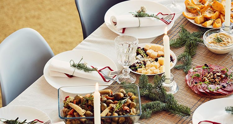 Masa festivă nu este un motiv să renunțăm la principiile alimentației echilibrate și să includem în meniu în mare parte produse hipercalorice. Astfel, vă recomandam să puneți accent în mare parte pe legume și verdețuri, salate asezonate cu ulei (nu cu maioneză) care să constituie 50% din farfurie. Cealaltă jumătate de farfurie va fi alcătuită (25%) din o sursă de proteină – carne sau pește, iar celelalte 25% rămase – din cereale, paste integrale sau cartofi.