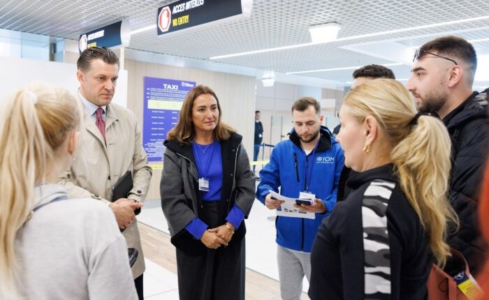 Cei 11 cetățeni, printre care majoritatea sunt mame cu copii, au fost întâmpinați pe Aeroportul Internațional Chișinău de către secretarul general al MAE, Mihai Mîțu, și șefa Misiunii OIM în Moldova, Ester Ruiz de Azua.