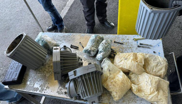 VIDEO/ Captură de droguri în valoare de peste trei milioane de lei. O parte din ele erau ascunse în motoare pentru pompe