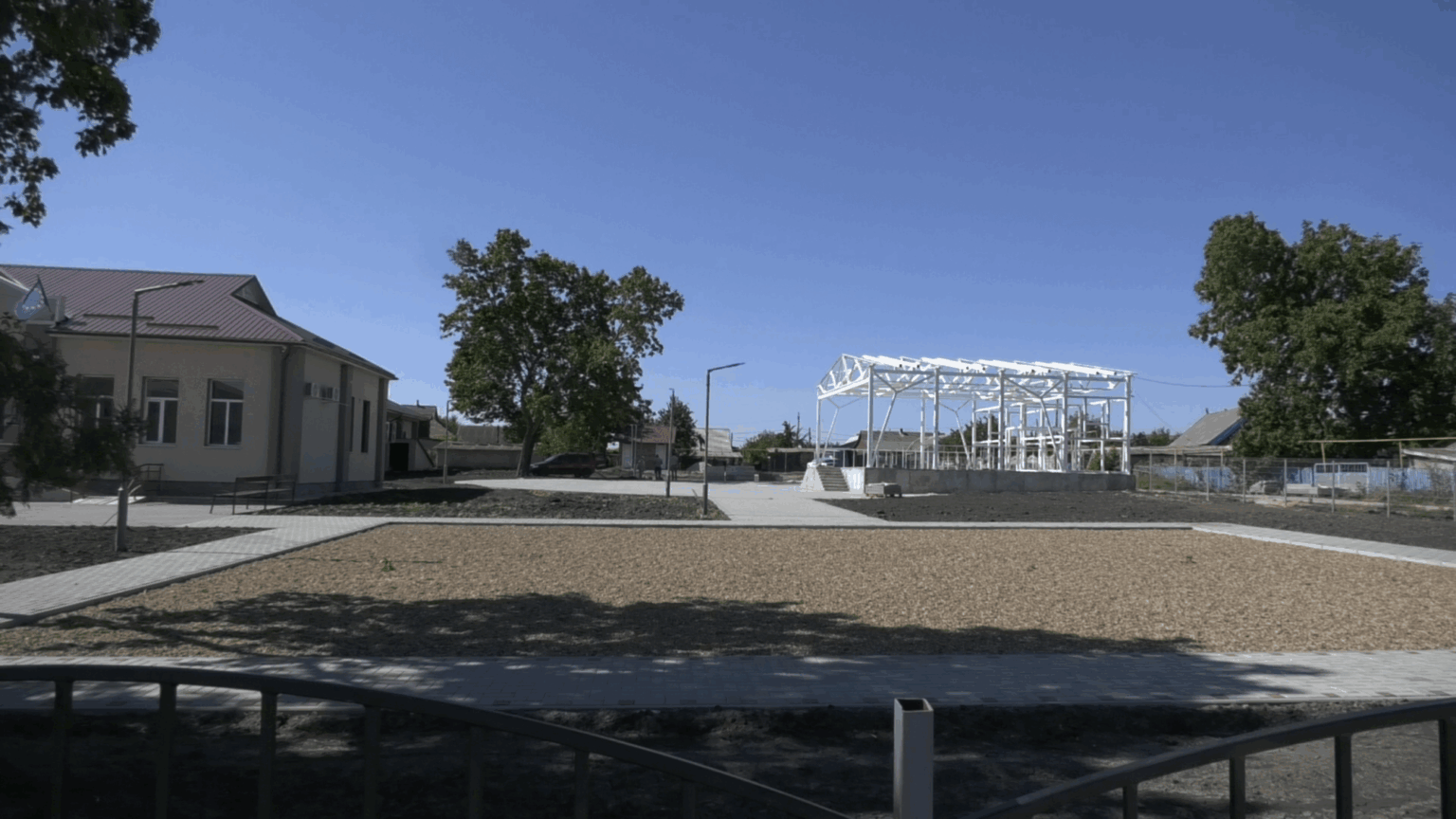 Dirigintele de șantier menționează că lucrările sunt programate conform proiectului, iar pe lângă scena în aer liber, alei modernizate, gazon verde și teren de joacă pentru copii, zona va fi iluminată.